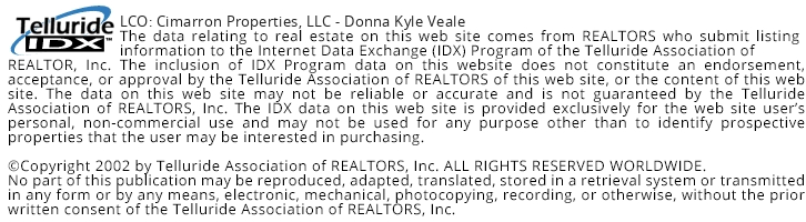 | Location: | Close to Gondola,Near Park,South of Colorado Area: Town of Telluride - 11 (Major Area 10) |